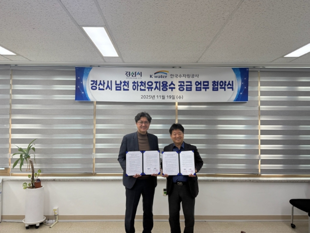 [뉴스다컴] 경산시는 19일 맑은 물 사업본부에서 한국수자원공사 운문권 지사와‘남천 하천유지용수(환경 개선 용수) 공급’을 위한 업무협약을 체결했다고 밝혔다.