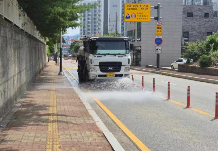 시는 최근 폭염이 수일째 이어지고 공사현장 주변에서 발생하는 비산먼지 민원도 지속적으로 제기됨에 따라 여름철 폭염 및 비산먼지 피해 최소화를 위해 살수작업을 추진한다.