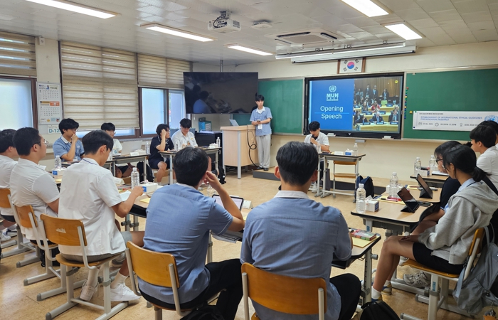 [뉴스다컴] 대전시교육청은 7월 12일 서일고등학교에서 2025 동아리 연합 영어 모의유엔회의를 개최했다고 밝혔다. 이번 행사에는 서일고, 대덕고, 대전대신고 동아리 학생들과 기타 대전 지역 고등학생 약 70명이 참가해, 영어로 소통하며 협력하는 경험을 쌓고 세계시민으로서의 역량을 키우는 뜻깊은 시간을 가졌다.