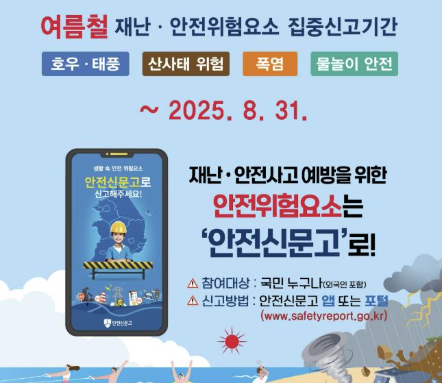 이번 ‘여름철 안전신문고 집중신고제’는 8월까지 운영되며, 기후 상황에 따라 연장될 수 있다.