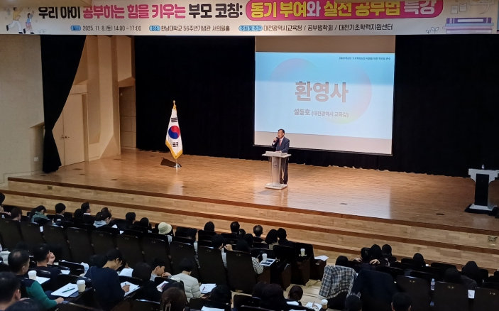 [뉴스다컴] 대전시교육청은 11월 8일 한남대학교 56주년 기념관 서의필홀에서 『우리 아이 공부하는 힘을 키우는 부모 코칭』이라는 주제로 학부모 연수를 실시했다.