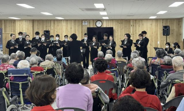 ‘찾아가는 연주회’는 공주시립합창단이 관내 학교와 병원, 경로당 등 문화시설 접근이 어려운 곳을 직접 찾아가 합창 공연을 선보이는 방문형 공연 프로그램이다.