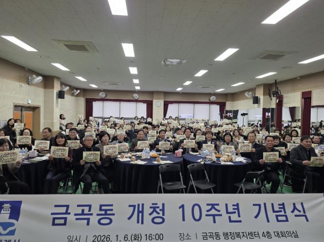 [뉴스다컴] 2026년 개청 10주년을 맞은 권선구 금곡동은 지난 6일 지역구 의원과 주민 등 100여 명이 참석한 가운데 주민자치회 및 통장협의회와 함께 10주년 기념행사를 개최했다.