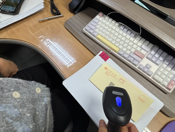 | ▲ 천안시가 세외수입 고지서 반송 업무에 QR스캐너를 활용한 자동 반송 처리 시스템을 도입했다. |