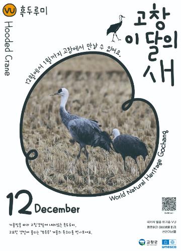 [뉴스다컴] 고창군이 12월 ‘고창갯벌 이달의 새’로 멸종위기 철새인 흑두루미(학명 Grus monacha)를 선정하고 겨울철 고창갯벌의 생태적 중요성을 알리기 위한 캠페인을 진행한다고 2일 밝혔다.