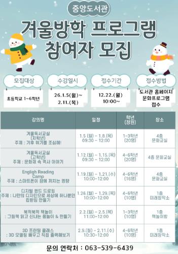 | ▲ “도서관에서 꿈 키워요”… 정읍시, 초등생 맞춤형 겨울 프로그램 풍성 |