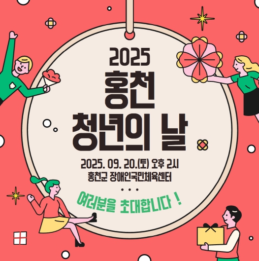 [뉴스다컴] 홍천군은 9월 20일 오전 10시 30분, 장애인국민체육센터에서 ‘2025 홍천 청년의 날 행사’를 개최한다고 19일 밝혔다.