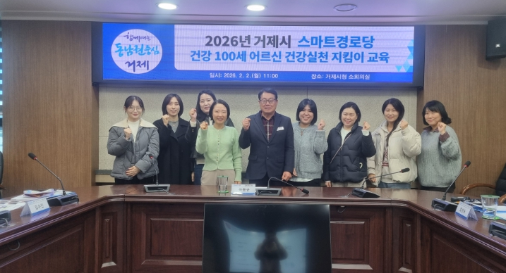 [뉴스다컴] 거제시는 2021년부터 성공적으로 추진해 온 스마트경로당 사업의 일환으로, ‘2026년 건강 100세 어르신 건강실천 지킴이’8명을 2월 2일 참여자 교육을 시작으로 관내 9개면 215개 경로당에 본격 투입한다고 밝혔다.