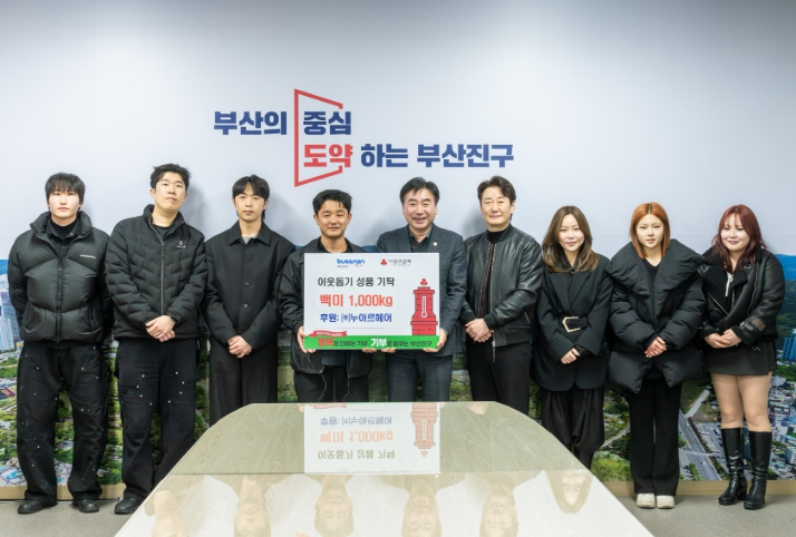 [뉴스다컴] 부산 부산진구은 1월 14일, ㈜누아르헤어(총괄대표 송강우)로부터 백미 1,000kg를 기탁받았다고 전했다.