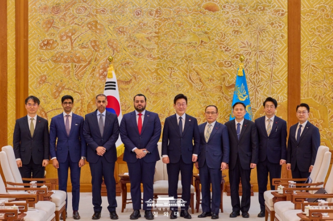 [뉴스다컴] 이재명 대통령은 28일 오전 「모하메드 빈 압둘아지즈 알-쿨라이피(Mohammed bin Abdulaziz Al-Khulaifi)」 카타르 국왕 특사를 접견했다.