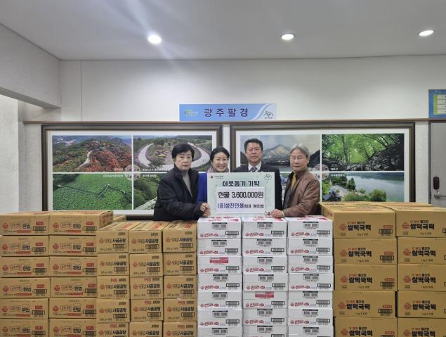 [뉴스다컴] 성진인쇄는 지난 3일 연말을 맞아 광주시 도척면을 방문해 라면, 즉석밥, 떡 등 360만 원 상당의 물품을 기탁하며 온정을 전했다.