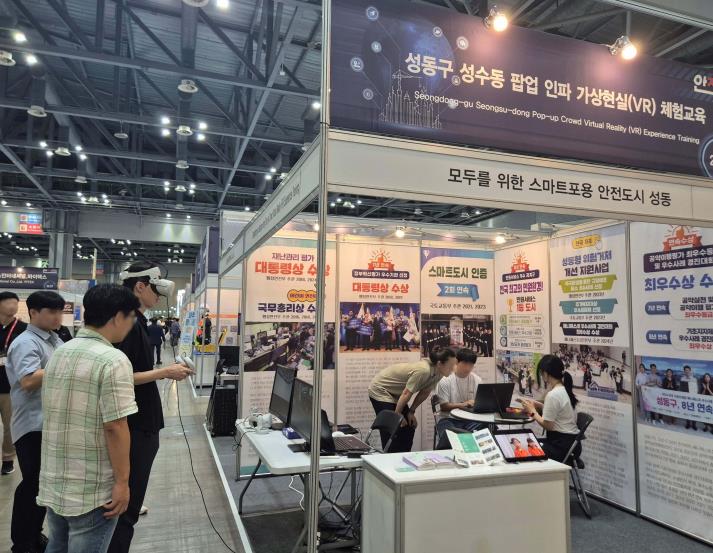 [뉴스다컴] 서울 성동구는 9월 17일부터 19일까지 경기도 고양 킨텍스에서 열린 ‘2025 대한민국 안전산업박람회(K-SAFETY EXPO 2025)’에 참가해 전국 최초 성수역·연무장길·앤더슨씨 등 지역 주요 일상공간을 배경으로 한 ‘VR(가상현실) 인파위기관리 체험교육’ 프로그램을 선보이며 큰 주목을 받았다고 밝혔다.