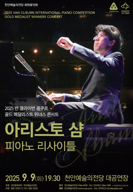 [뉴스다컴] 천안예술의전당은 오는 9월 9일 2025 반 클라이번 국제 피아노 콩쿠르 금메달리스트 아리스토 샴의 단독 리사이틀을 개최한다.