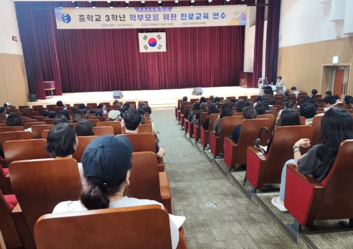 이번 연수는 진로 전환기에 있는 중학교 3학년 자녀를 둔 학부모를 대상으로, ‘AI시대, 우리 아이에게 맞는 진로진학 설계 방법’을 주제로 진행됐다. 급변하는 교육 환경 속에서 고등학교 진학 선택의 중요성과 2028학년도 대입제도 변화에 대한 이해를 돕고, 학부모의 자녀 진로 설계를 실질적으로 지원하고자 마련됐다.