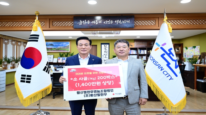 백성현 논산시장은 "매년 변함없이 지역사회를 위해 따뜻한 나눔을 실천해 주시는 황산벌 한우에 진심으로 감사드린다"며 "기탁해주신 소중한 한우 사골이 꼭 필요한 곳에 전달되어 우리 이웃들이 따뜻한 추석을 보낼 수 있도록 최선을 다하겠다"고 화답했다.