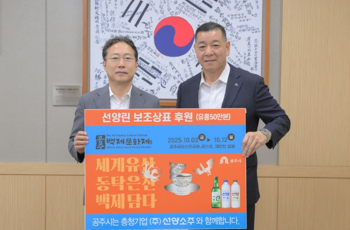 최원철 시장은 “지역 인재 양성과 백제문화제 성공 개최를 위해 힘을 보태주신 ㈜선양소주에 감사드리며, 이번 협력이 시민과 함께하는 문화도시 공주를 만들어가는 데 큰 밑거름이 될 것”이라고 밝혔다.