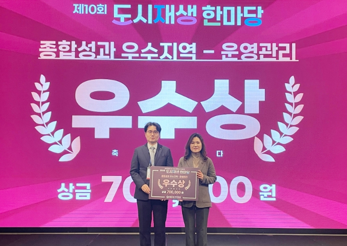[뉴스다컴] 충주시가 10일 오후 5시 서울콘래드 호텔에서 국토교통부가 주최한 ‘2025년 도시재생 종합성과평가 경진대회’의 운영관리 분야 ‘우수상’을 수상했다고 밝혔다.