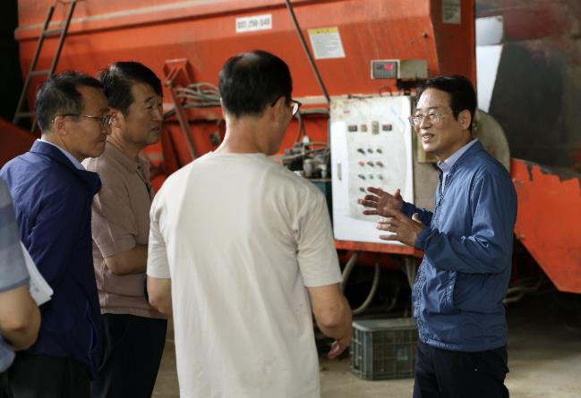 ▲ 강진원 강진군수가 고급육 생산농가를 방문하여 농가를 격려하고 한우 사육 및 축사시설 현황을 살펴보고 있다. |