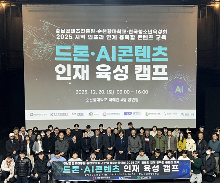 [뉴스다컴] 충남콘텐츠진흥원은 순천향대학교, 한국청소년육성회와 함께 추진한 ‘드론·AI 콘텐츠 인재 육성 캠프’를 성공적으로 마무리했다고 밝혔다.