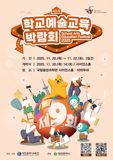 [뉴스다컴] 대전시교육청은 11월 20일부터 22일까지 '2025 제9회 학교예술교육박람회'를 국립중앙과학관에서 개최한다고 밝혔다.