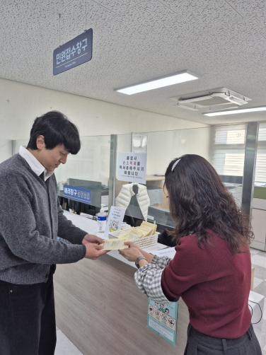 | ▲ 민원담당자가 민원인에게 핫팩 제공 |
