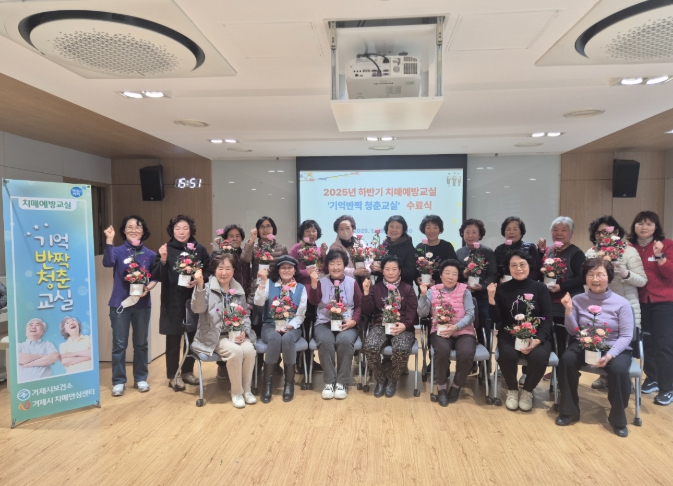 [뉴스다컴] 거제시치매안심센터는 지난 10월 15일 시작하여 매주 3회씩 총 23회에 걸쳐 진행된 2025년 하반기 치매예방교실‘기억반짝 청춘교실’이 12월 5일 참여자들의 큰 호응 속에서 마무리됐다고 밝혔다.