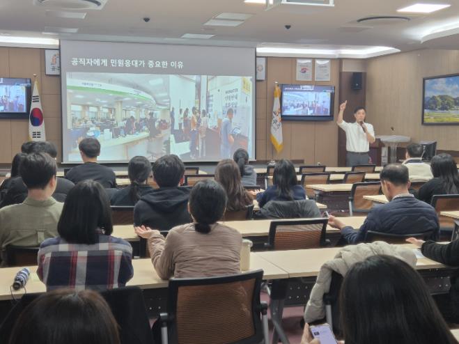 이번 교육은 공감과 배려를 중심으로 한 친절한 공직문화 조성과 특이민원 대응 방안 마련을 목적으로 했으며, 대면교육과 부서별 방송을 병행해 진행됐다.