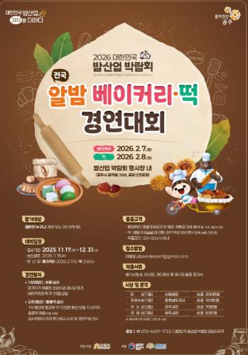 [뉴스다컴] 공주시는 2026년 2월 4일부터 8일까지 열리는 ‘2026 대한민국 밤산업 박람회-전국 알밤 베이커리·떡 경연대회’의 참가자를 모집한다고 밝혔다.