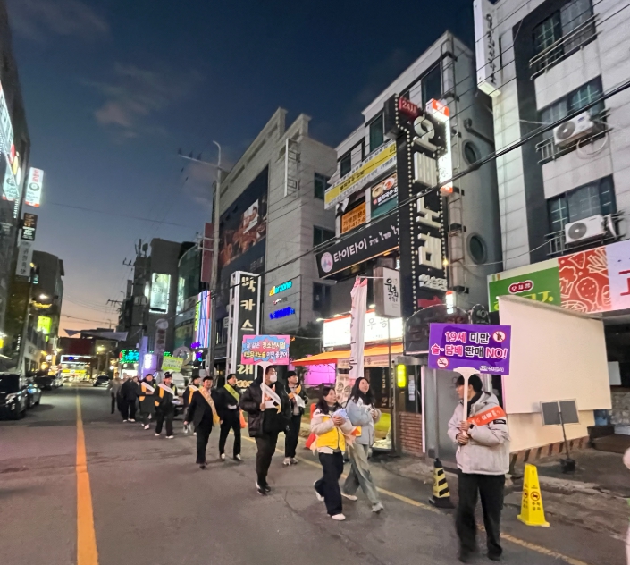 이날 천안시는 천안서북경찰서, 천안교육지원청, 청소년유해환경감시단, 천안시청소년재단 등 유관기관과 함께 두정동 유흥가 주변 및 먹자골목 일대를 순찰했다.