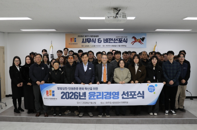 [뉴스다컴] 파주도시관광공사는 지난 1월 2일 본청 대회의실에서 ‘2026년 윤리경영 선포식’을 개최하여 청렴과 인권을 기반으로 한 윤리경영 실천 의지를 대내외에 공식 선언했다.