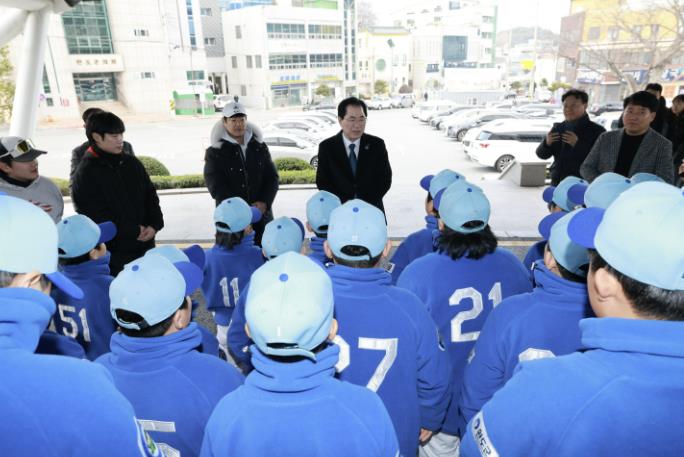 | ▲ 선수단을 격려하는 신우철 군수) |