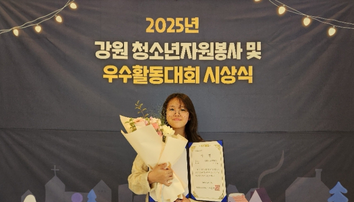 [뉴스다컴] 영월군청소년문화의집봉사동아리 소속 이가윤(무릉초6)이 지난 14일 ‘2025년 강원 청소년자원봉사 및 우수활동대회’ 시상식에서 한국청소년활동진흥원 이사장상을 받았다.