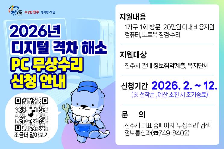 [뉴스다컴] 진주시는 정보 취약계층의 디지털 격차를 해소하기 위해 ‘컴퓨터(PC) 무상수리 지원사업’ 신청을 받는다고 밝혔다.