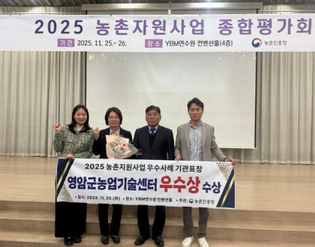 [뉴스다컴] 영암군농업기술센터가 25일 농촌진흥청 주관의 ‘2025 농촌자원사업 우수사례 기관 경진’에서 농촌자원 분야 우수상을 수상했다.