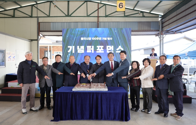 깊어가는 가을 정취 속에서 성악가의 품격 있는 공연을 시작으로 ▲ 공로패 수여 ▲ 100주년 기념영상 상영 ▲ 기념사 및 축사 ▲ 기념 퍼포먼스 ▲ 축하공연이 이어졌다. 특히, 풍각시장 100년의 역사와 의미를 담은 기념영상은 참석자들의 마음을 깊이 울리며, 풍각시장의 발자취와 가치를 다시금 되새기는 계기가 됐다.