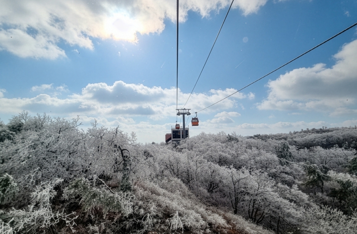 남해안 최고봉인 하동 금오산에 위치한 하동케이블카는 사계절 내내 아름답지만, 겨울철에는 그 매력이 배가 된다. 하얀 눈이 내려앉은 금오산의 설경과 푸른 남해가 어우러진 풍경은 겨울 산행 없이도 편안하게 360도 파노라마 뷰로 감상할 수 있어 ‘겨울 뷰 맛집’으로 통한다.