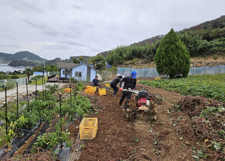 이번 활동은 수확철을 맞아 일손이 부족한 농가에 힘을 보태기 위해 마련된 것으로, 교통과 직원들은 욕지고구마 작목반과 함께 고구마를 수확하고 밭 주변을 정리하며 구슬땀을 흘렸다.