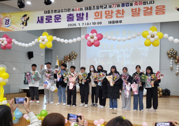 오정미 교장은 “졸업은 끝이 아니라 새로운 세상으로 나아가는 첫걸음인 만큼 우리 학생들이 태흥초에서 쌓은 소중한 추억과 배움을 자양분 삼아 꿈을 향해 당당히 나아가기를 진심으로 응원한다”고 말했다.