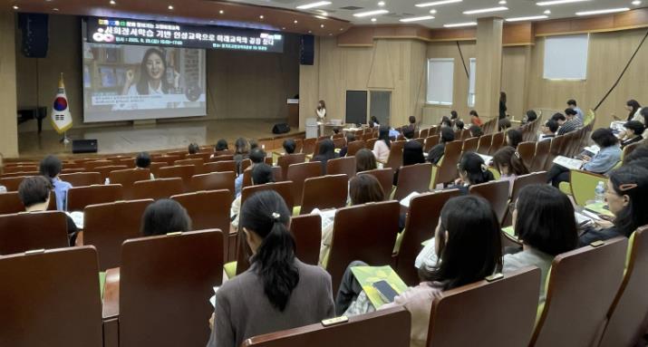 [뉴스다컴] 경기도고양교육지원청은 9월 29일 본청 3층 대강당에서 열린 '인성 더(T.H.E.) 고양, 사회정서학습 기반 인성교육으로 미래교육의 길을 찾다' 연수를 성황리에 마무리했다. 이번 연수는 교원들의 사회정서학습(SEL) 기반 인성교육 전문성을 높이고, 교육과정과 연계한 현장 적용 사례를 공유하기 위해 마련됐다.