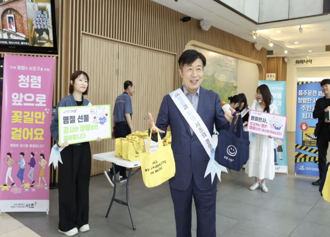 전성수 서초구청장은 “추석명절을 앞두고 실시한 청렴캠페인을 통해 공정하고 투명한 공직 문화가 확산되길 바란다”며, “앞으로도 갑질‧부정·부패 없는 ‘청렴1등 도시 서초‘를 만들기 위해 최선을 다하겠다”고 전했다.
