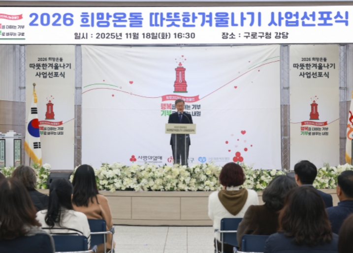 [뉴스다컴] 서울시 구로구가 18일 오후 4시 30분에 구청 강당에서 ‘2026 희망온돌 따뜻한 겨울나기’ 선포식을 개최했다.