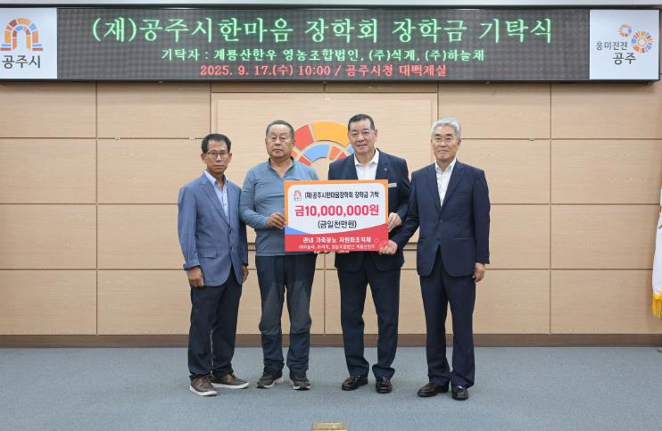 [뉴스다컴] 공주시 관내에서 가축분뇨 자원화 사업을 운영 중인 농업법인 3개소가 지난 17일 (재)공주시한마음장학회에 총 1천만 원의 장학금을 기탁했다.