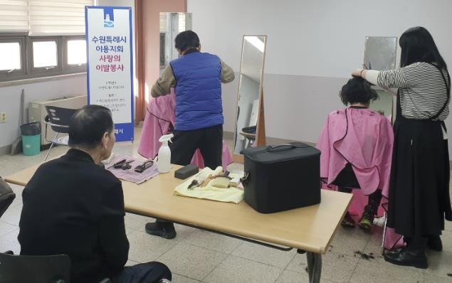 | ▲ 시저스맨, 수원시 영통구 매탄3동에서 저소득 노인·장애인 위한 따뜻한 '사랑의 이발 봉사' 실천 |