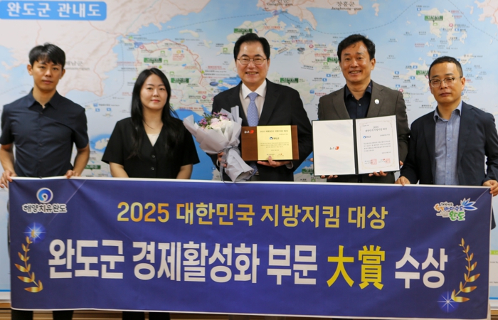 [뉴스다컴] 완도군은 지난 24일 서울 한국프레스센터에서 열린 ‘2025 대한민국 지방 지킴 대상’ 시상식에서 경제 활성화 부문 대상을 수상했다.