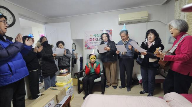 이날 권선2동 지역사회보장협의체 위원 10여 명은 1월 생신을 맞은 어르신께 준비한 생신 선물과 케이크를 전달하고 축하 노래와 덕담을 나누며 즐거움과 웃음이 가득한 시간을 가졌다.