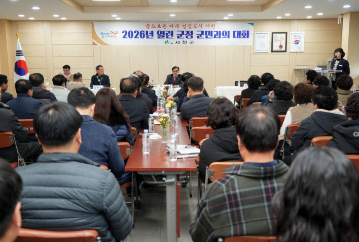 이번 군민과의 대화는 지난 12일 장항읍을 시작으로 관내 13개 읍·면에서 진행됐으며, △경로당 방문을 통한 현장 의견 청취 △2025년 군정 주요 성과 보고 △2026년 군정 운영 방향 설명 △군민과의 대화 순으로 운영됐다.