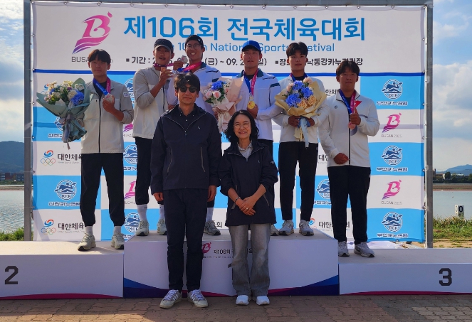 | ▲ 제106회 전국체육대회 카누경기 고등부 k-2 1000m 금메달(한밭고 감은규, 박재영) |