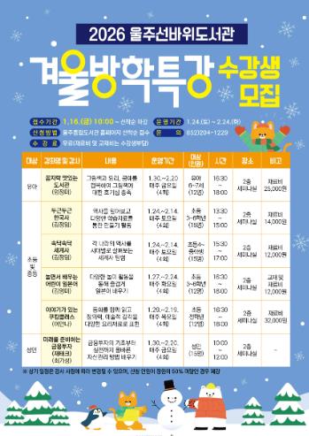 | ▲ 울주선바위도서관, 겨울방학특강 운영 |