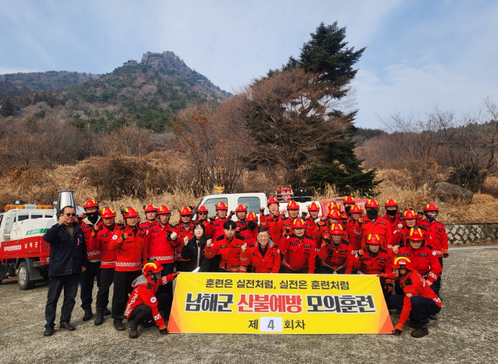 남해군 산불 진화인력은 평상시에도 산불 발생에 대비해 매주 1회 정기적인 모의훈련을 실시하고 있으며, 특히 봄철 산불 조심 기간을 앞두고 훈련 강도를 높이고 있다.