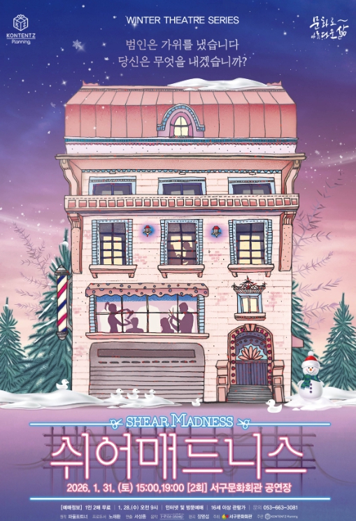 [뉴스다컴] 서구문화회관은‘Winter Theatre Seires(겨울 연극 시리즈)’의 첫 번째 순서로 연극'쉬어매드니스'를 1월 31일 오후 3시, 7시 (2회) 무대에 올린다.